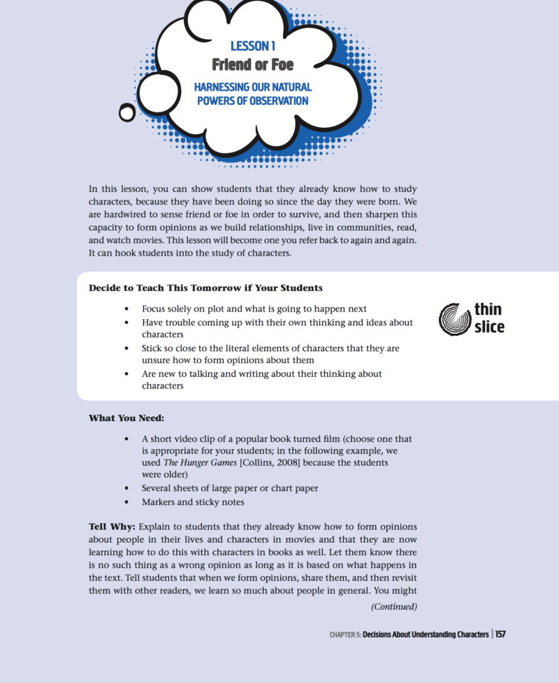 The authors do a fantastic job of giving step-by-step directions with electric current fiction favorites for how to explicitly teach character analysis to your students. Teachers will return to this get-go lesson whenever students demand to sharpen their skills at studying book characters. We wouldn't be surprised if they start analyzing characters on their own, as well as people they know in real life!